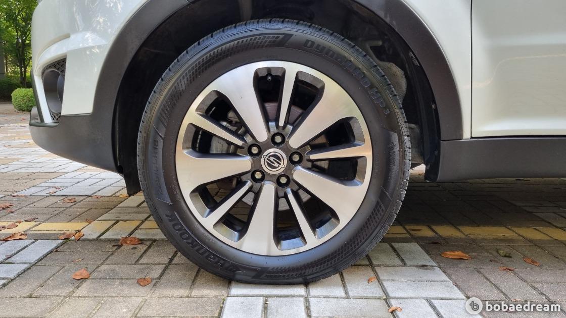 측면은 다이아몬드 커팅 공법으로 신규 디자인 된 18인치 휠을 적용했다. 전체적인 느낌은 코란도C만의