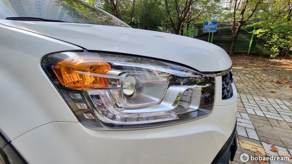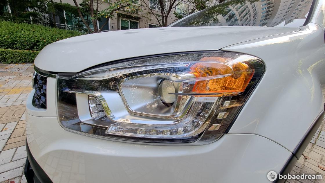 건 뭘까. 외관부터 보자. 전면은 블랙베젤 프로젝션 헤드램프 및 LED 포지셔닝 램프, 프롬 몰딩과 바디컬러